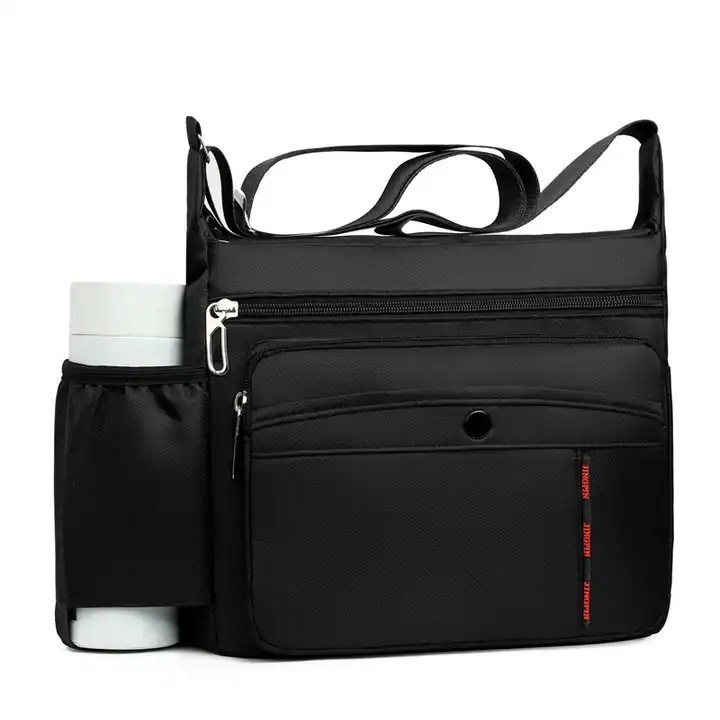 Unisex αδιάβροχο oxford cross body messenger μαύρο cross body sling τσάντα με τσέπη στη θήκη για μπουκάλι